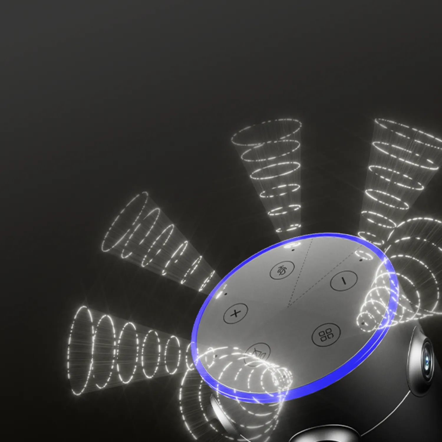 360 Alien features a 6 omnidirectional microphone array powered by ProperClean™ 2.0 noise, echo, and reverberation cancellation, delivering clear, natural voices across the table. For larger rooms, support for up to two expansion microphones extends audio pickup even further—ensuring everyone is heard clearly, without repetition or disruption.