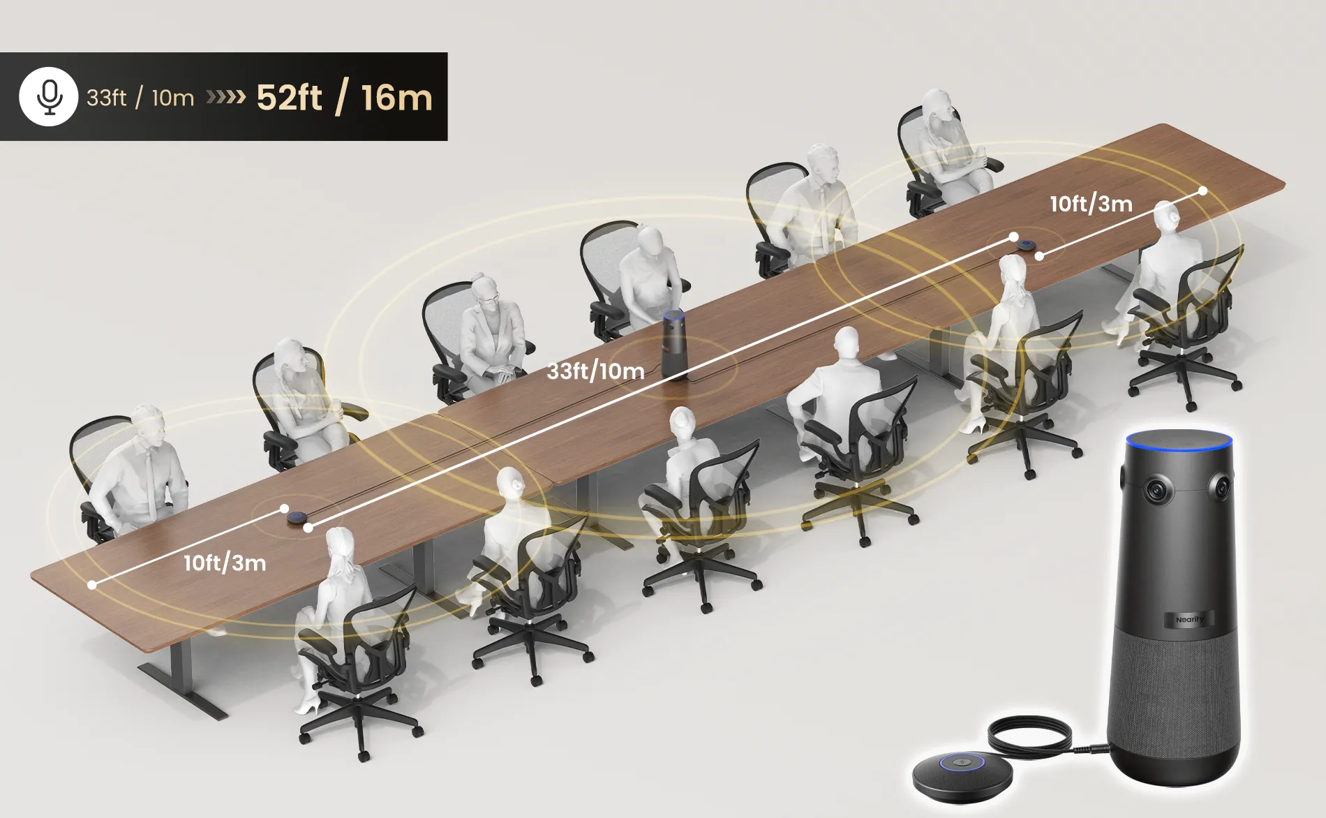 | 5.5m radius; 11m pickup range with 2 expansion mic | 5.5m radius; 11m pickup range with 1 expansion mic | ||