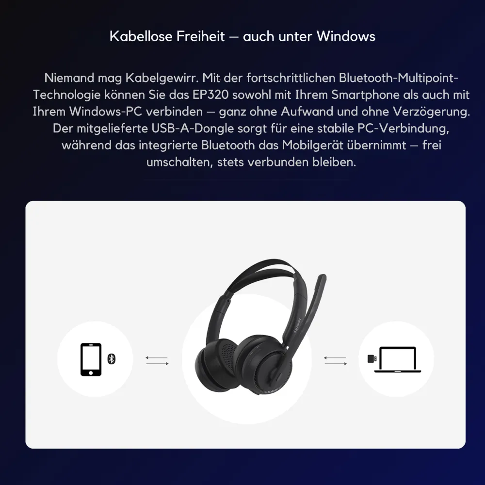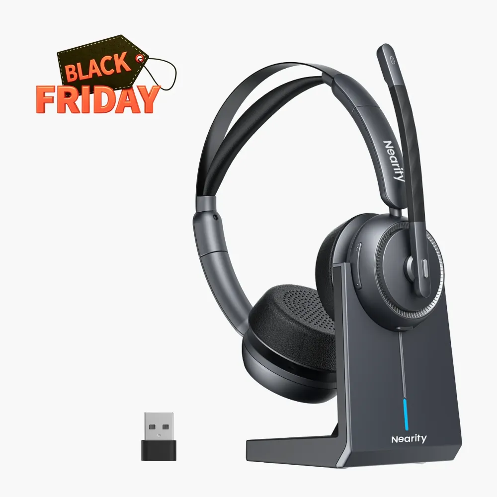 mit 4 Mikrofon-AI-Algorithmus, der auf HiFi4 DSP läuft, Dongle für einfache PC-Verbindung, 45 Stunden Akkulaufzeit und Ladestation.