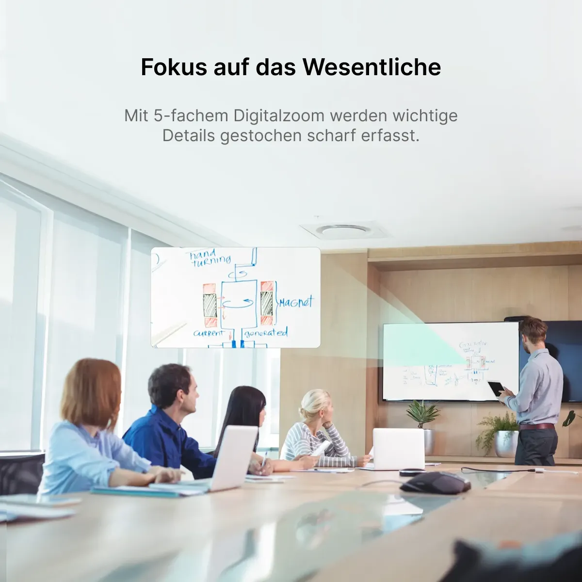 Die Zoom-Funktion ermöglicht es, sich auf wichtige Details zu konzentrieren und sorgt für maximale Flexibilität bei hybrider Zusammenarbeit, etwa in Online-Meetings, Präsentationen oder Diskussionen.
