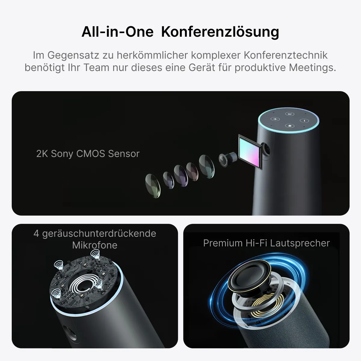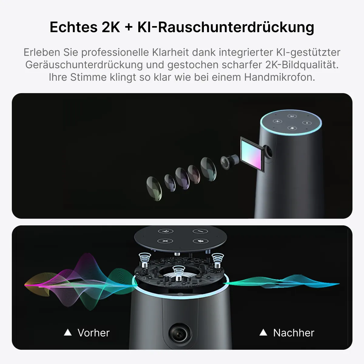 mit 120-Grad-2K-Objektiv, 4 KI-Mikrofon auf HiFi4 DSP, Hi-Fi-Lautsprecher, Plug&Play