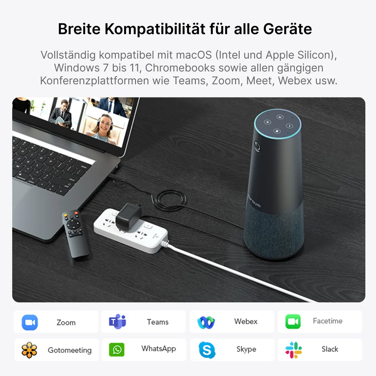Die C45 Videokonferenzkamera verfügt über ein 2K Ultra-HD-Objektiv mit einem 120°-Sichtwinkel. Sie erfasst alle Teilnehmer klar und in natürlichen Farben. Ideal für professionelle Videokonferenzen, Fernunterricht und Content-Erstellung.