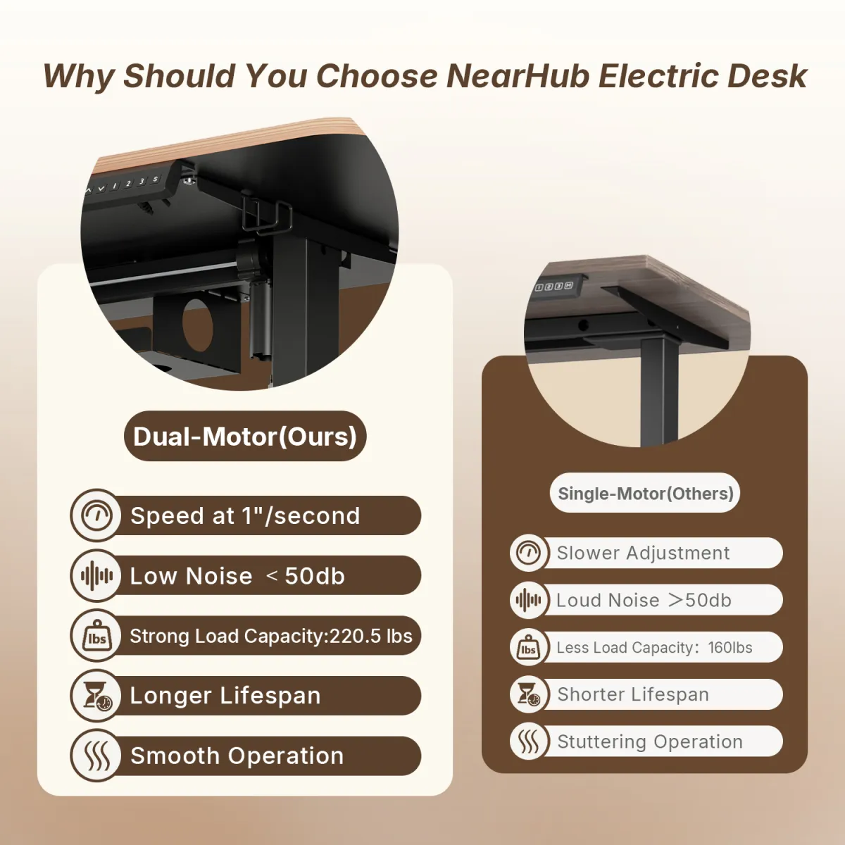 Smooth, Quiet Dual Motors with 6 Memory Presets & Cable Management