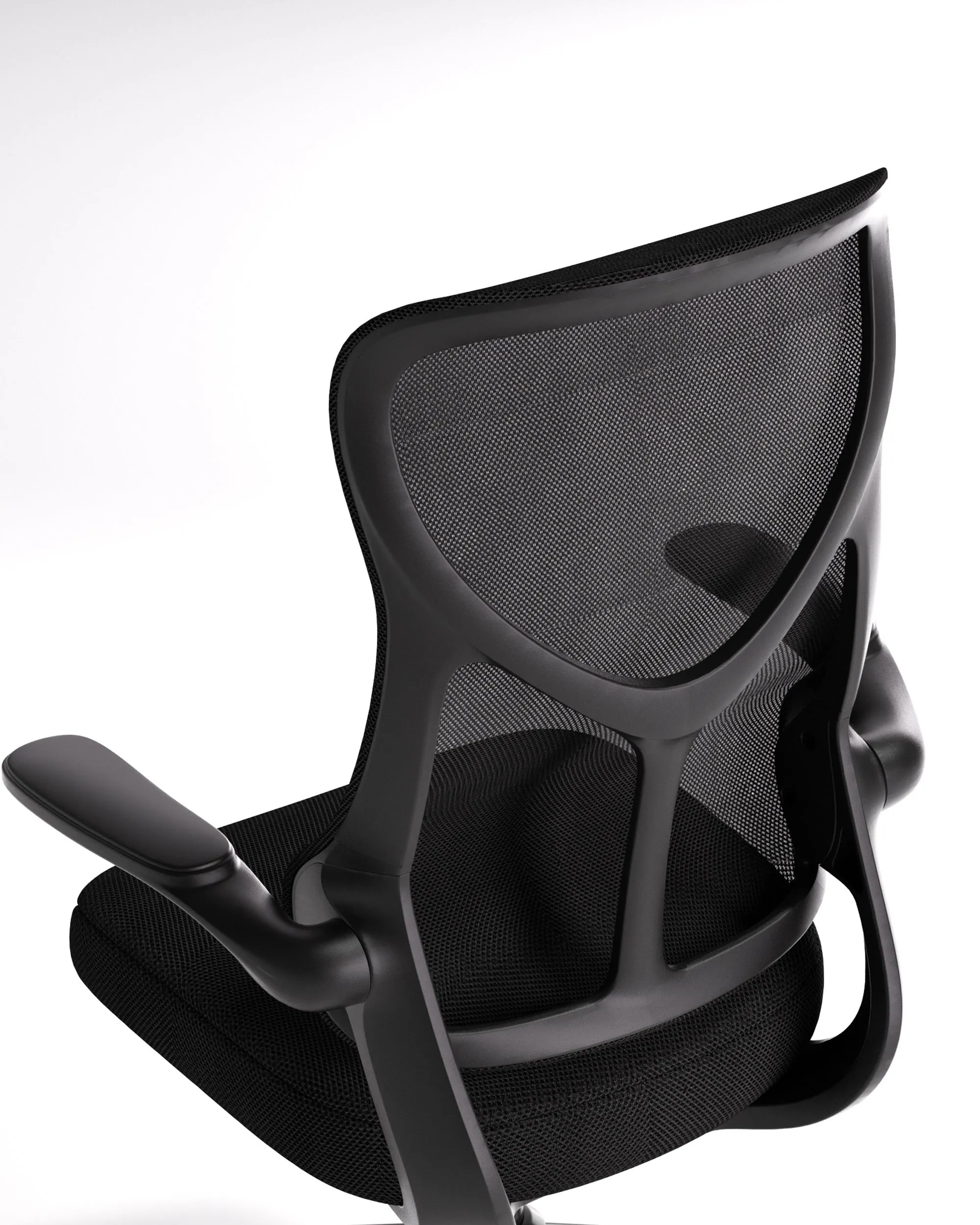 背中をしっかりサポートできるこの小型オフィスチェアを使用すると、長時間の着座でも疲れにくく、作業効率を高めることができます。