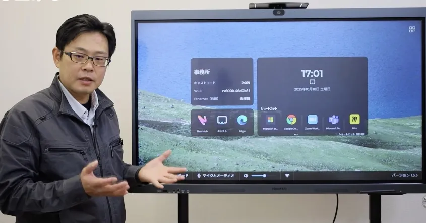 スマホ、タブレット、PC、テレビなど多様なデバイスから、有線・無線でNearHub Boardの大画面にコンテンツを表示。プレゼンをスムーズに対応。