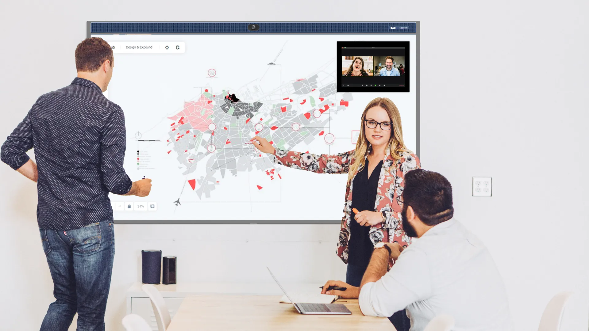 NearHub interactive whiteboard makes it possible for your team to interactively huddle and collect ideas in one shared room, which encourages efficient execution and allows ideas to flow.